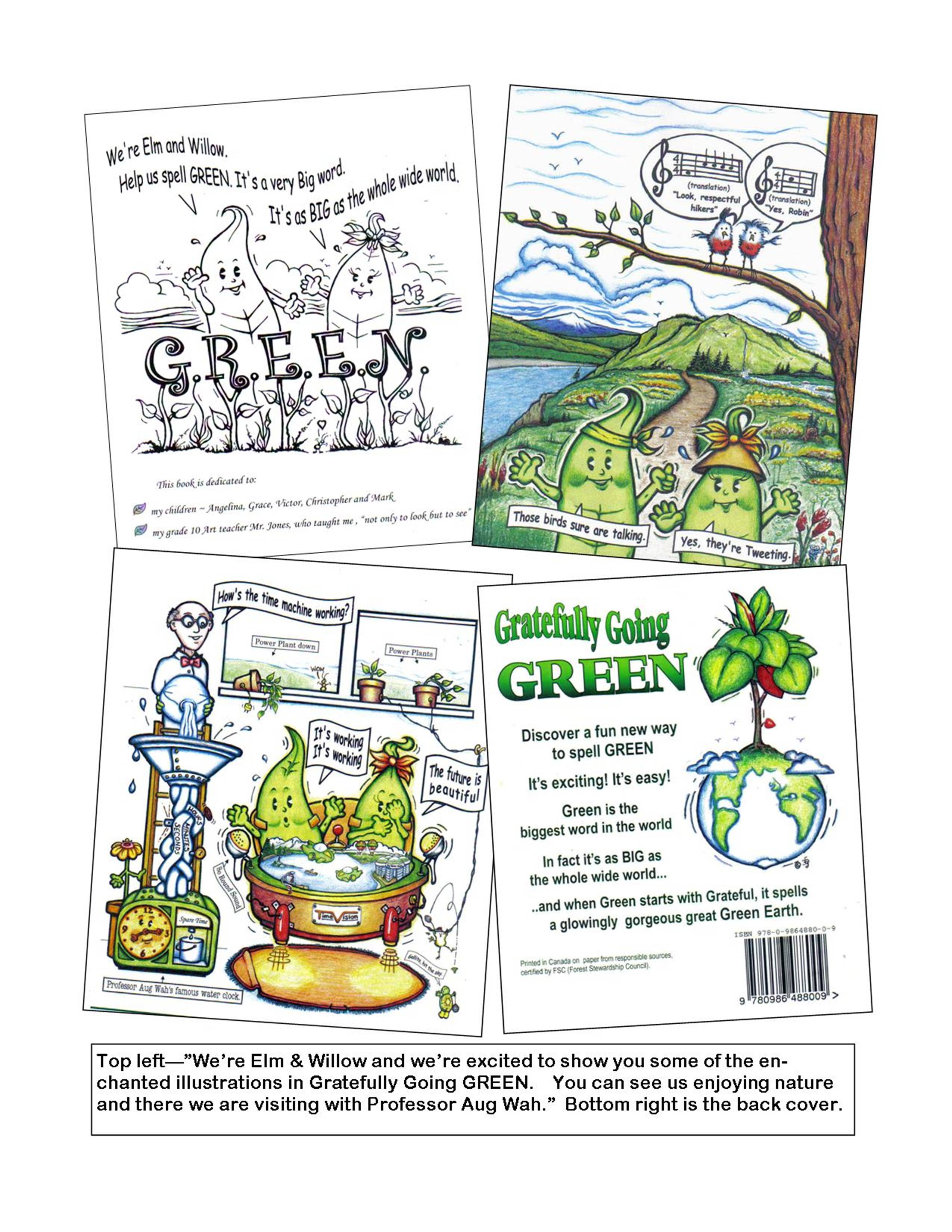 Everyone is happy. Everyone is excited. Because grEen is for Everyone. (Two of the "delicious" pages from Gratefully Going GREEN) Copyright 2012 David J. Hiebert